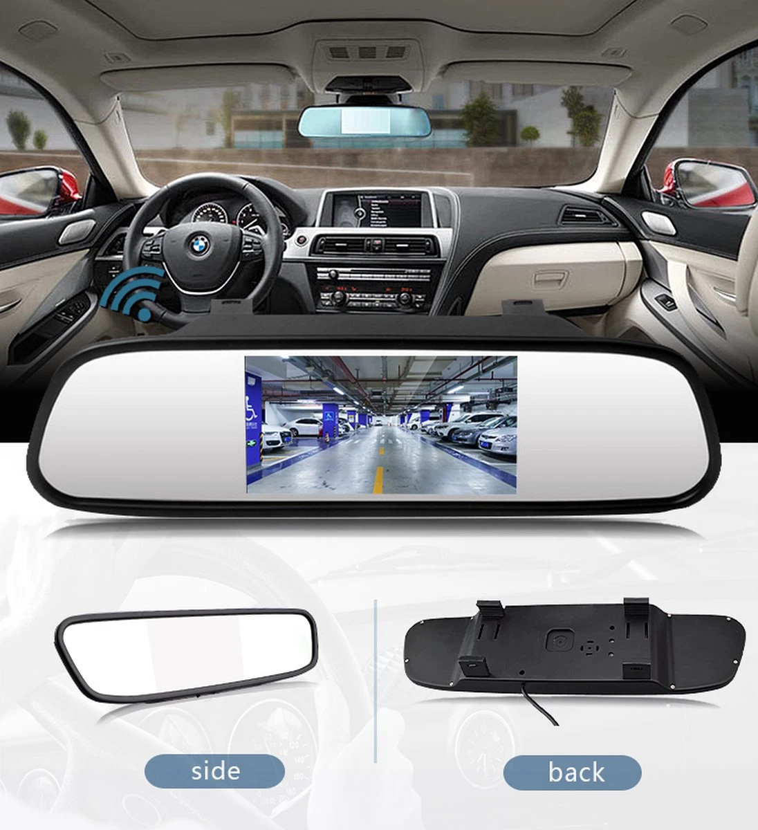 Deze CTX RV-890 spiegel camera auto is voorzien van uitstekende kwaliteit glas, hierdoor is het zicht naar achteren zowel overdag als ’s nachts erg goed. Het ingebouwde 4.3 inch LCD scherm zit verwerkt achter het glas van de spiegel en licht op wanneer je achteruitrijdt. Wil je het scherm ook tijdens het rijden laten draaien dan is dat uiteraard mogelijk.