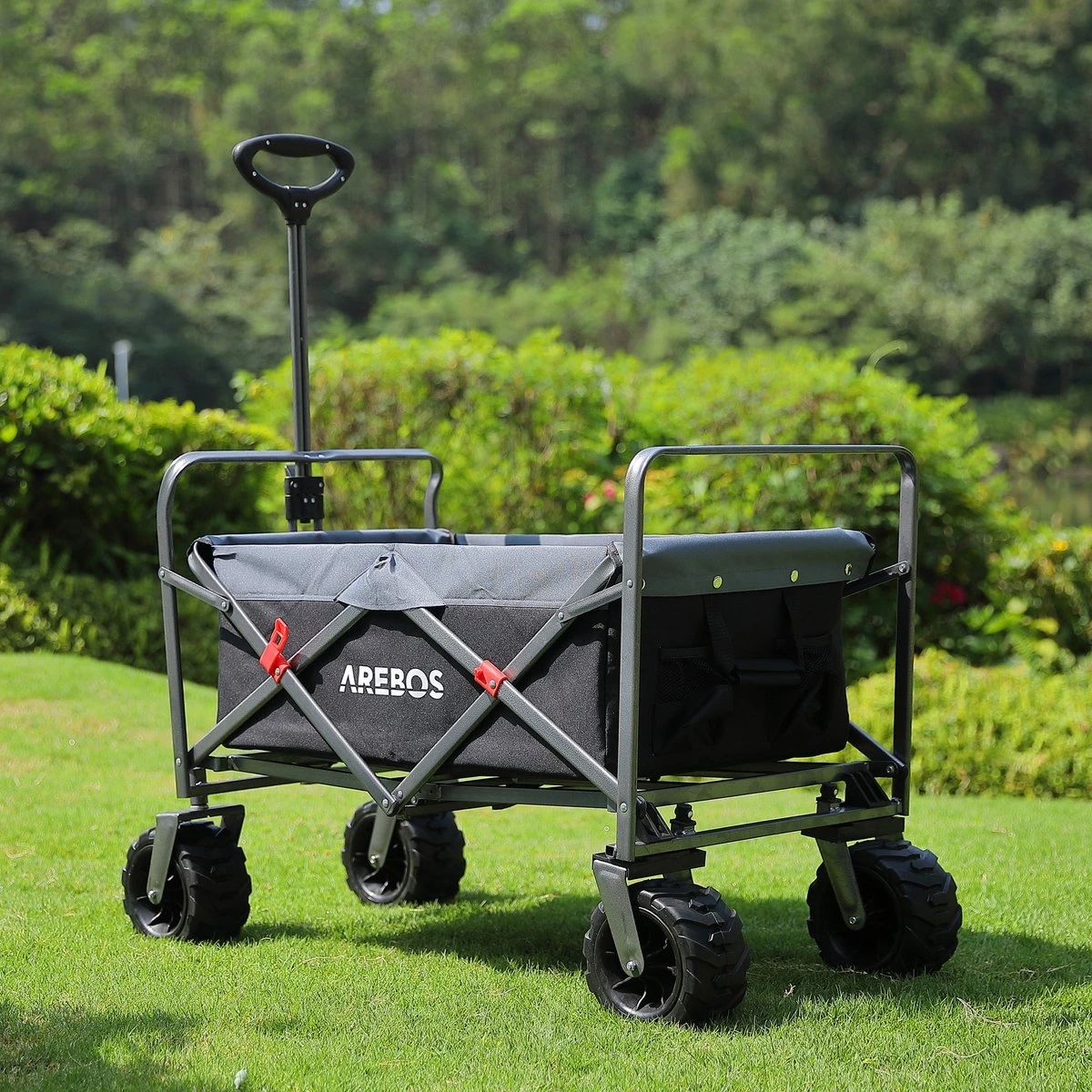 [UV- en WATERAFSTOTEND] De AREBOS handkar is gemaakt van duurzaam 600D oxford nylon en biedt bescherming tegen regen, vuil en UV-straling. Afneembare en gemakkelijk te reinigen stoffen onderdelen.