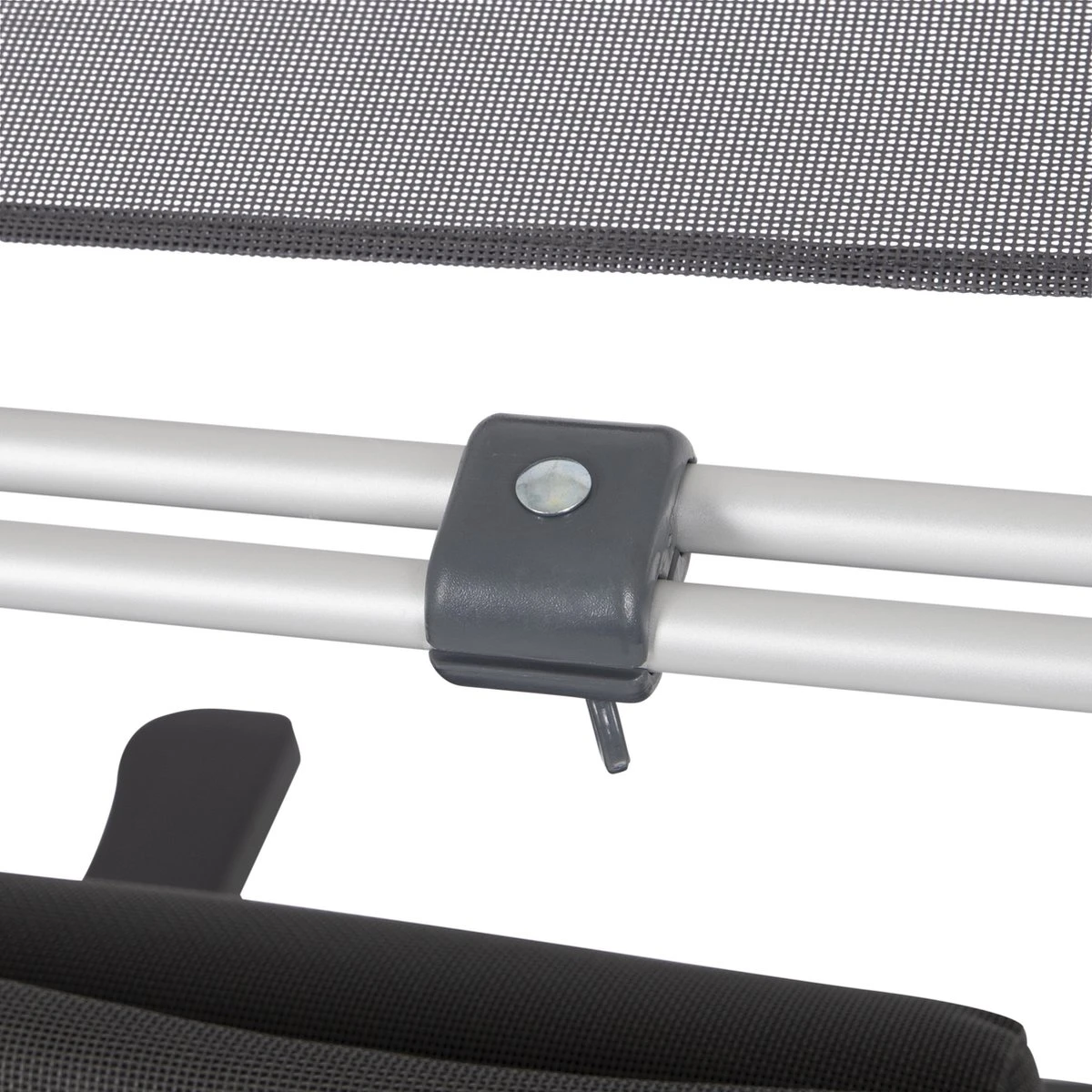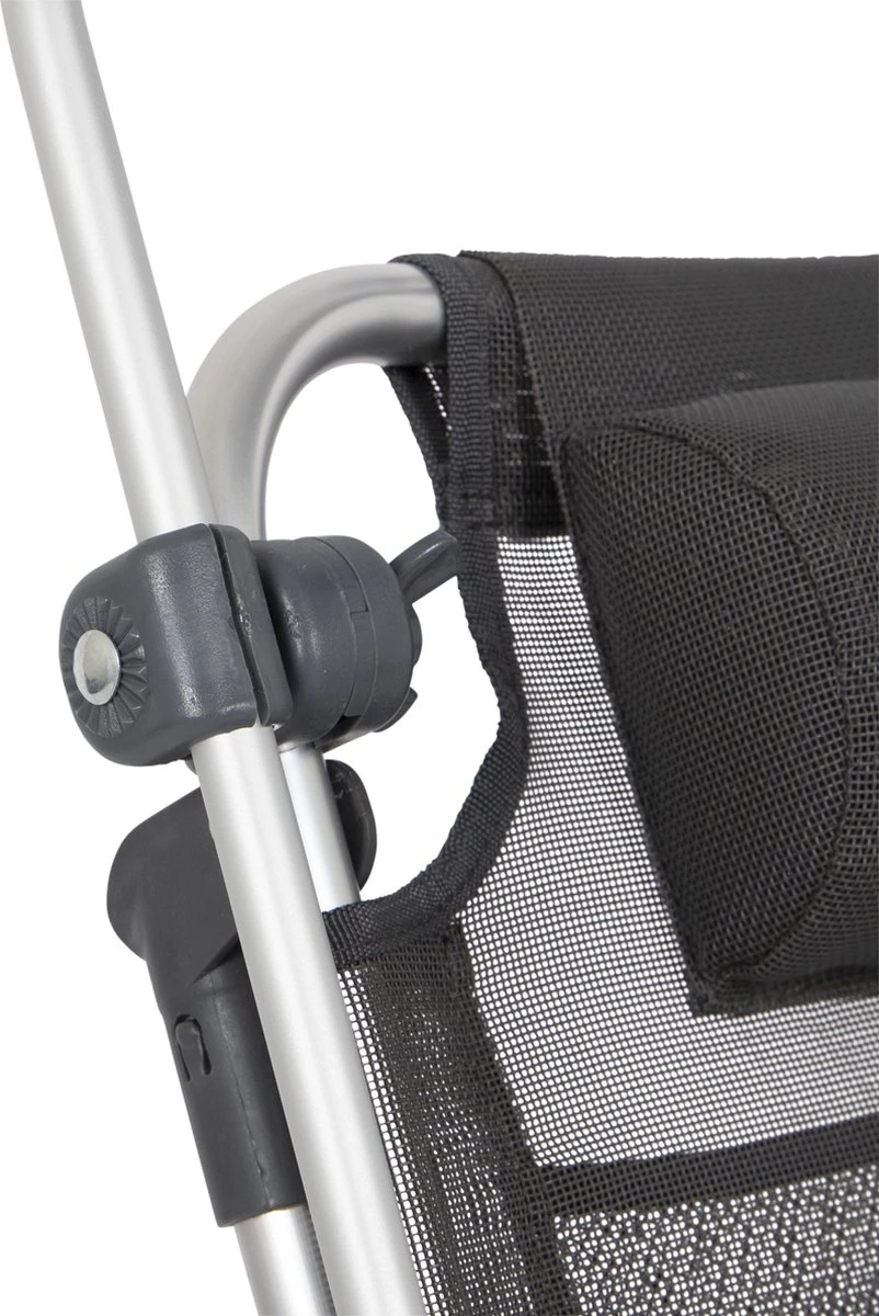 Een stijlvol zonnescherm. Deze is eenvoudig te bevestigen aan het frame van de meeste kampeerstoelen en stretchers. Daarnaast is het scherm in iedere gewenste richting te draaien.