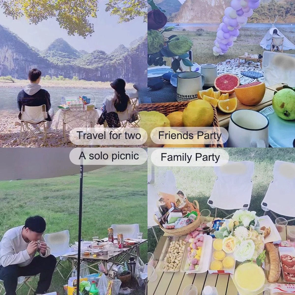 Dit maakt de vouwbare campingtafel, dus ideaal om mee te nemen op reis, vis trip of etentjes. Zo kan je overal comfortabel zitten of aanschuiven aan tafel.