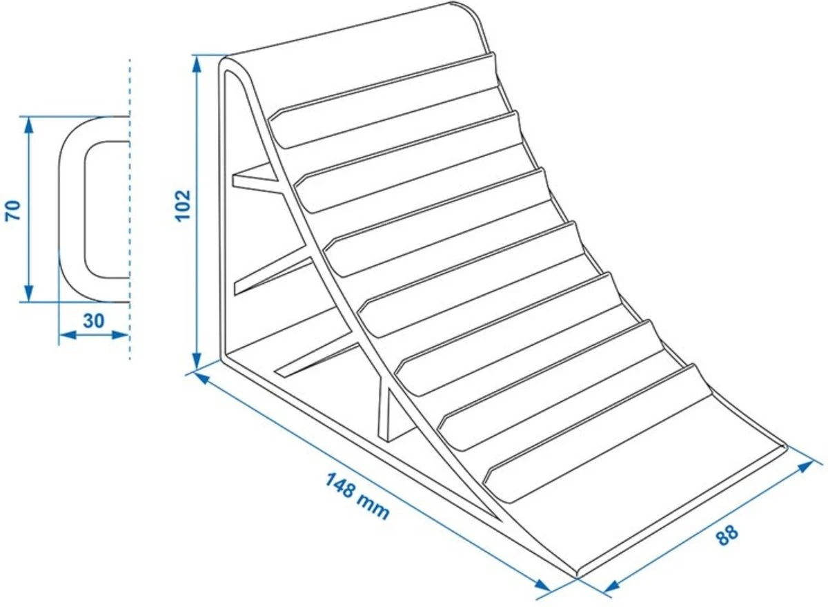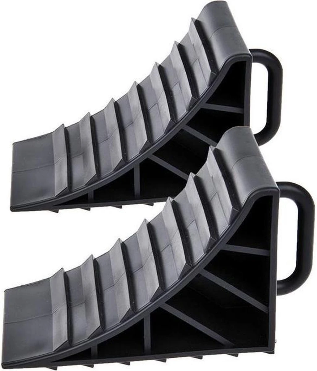 Deze sterke en stevige wielkeg is eenvoudig achter het wiel van het voertuig te plaatsen om onbedoelde beweging te voorkomen.