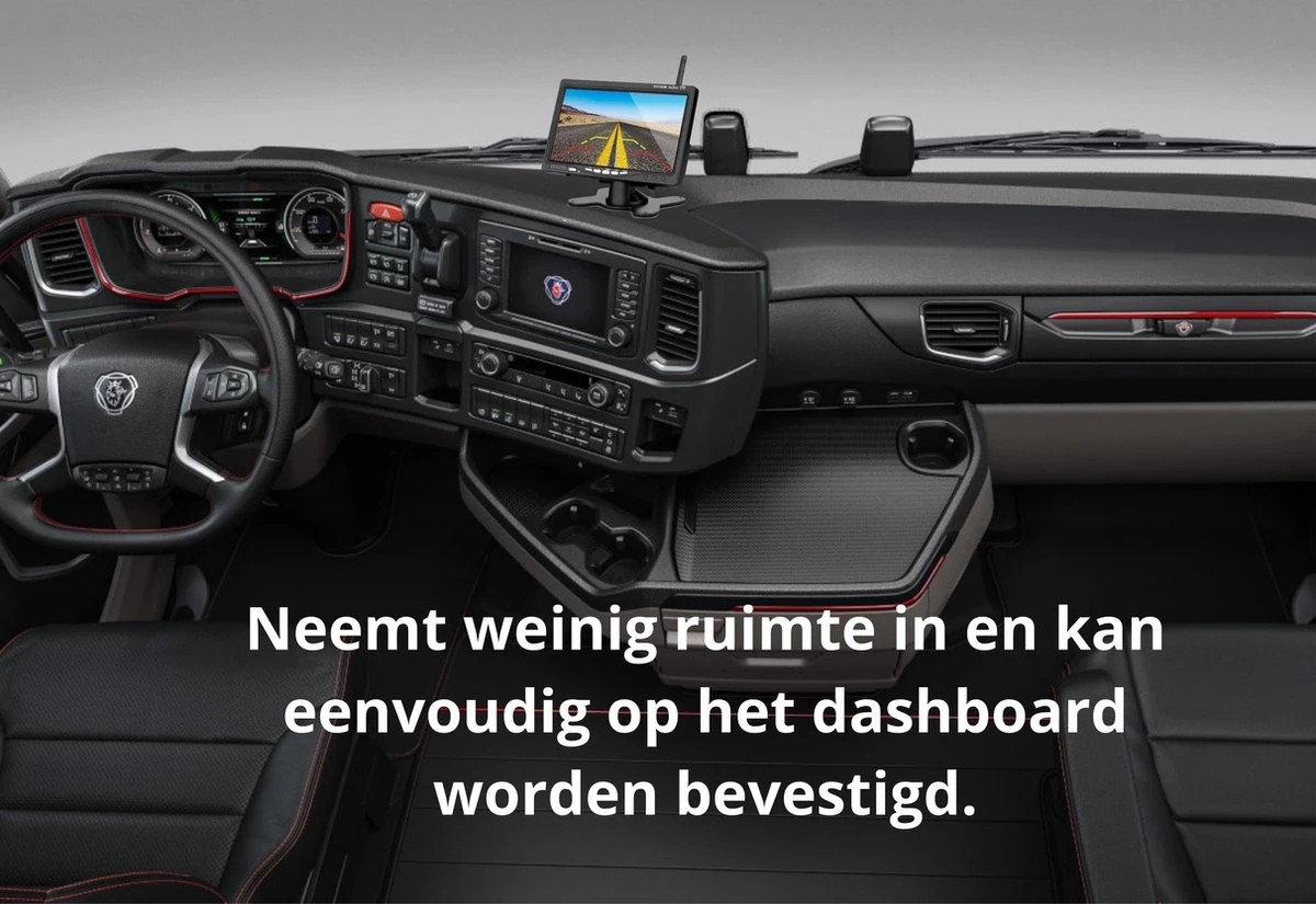 De installatie van zowel de monitor als de camera gaat zeer eenvoudig. Een krachtige en betrouwbare bevestiging van de monitor zorgt voor een fijne rijervaring en veiligheid. De monitor start automatisch op en synchroniseert automatisch met de camera. Betrouwbaar, gemakkelijk en zonder enige moeite te bevestigen!